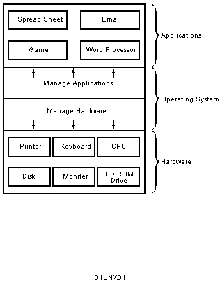 UNIX, like other operating systems, is a layer between the hardware and the applications that run on the computer. It has functions that manage the hardware and functions that manage executing applications. So what's the difference between UNIX and any
