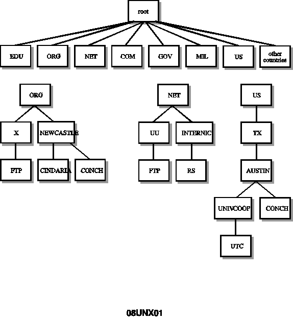 naming conventions. The best way to understand hostnames is to start out by reading them right to left, one word at a time. See Figure 8.1 for a sketch of the hierarchical name space used in these examples.