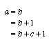 .EQ a mark = b .EN .EQ lineup = b+1 .EN .EQ lineup = b+c+1 .EN