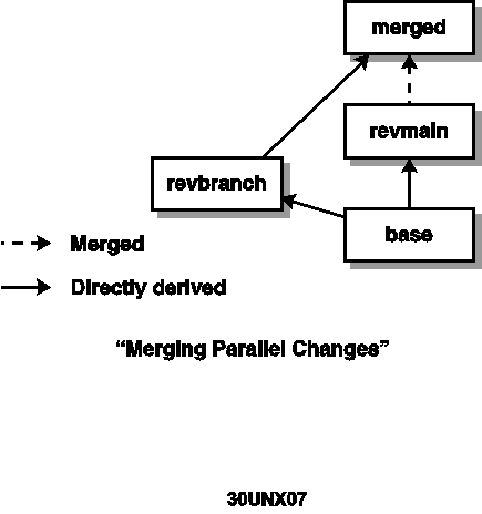 different variants of the same file. For example, while working on the 2.0 release of your product you can produce a maintenance update to the 1.0 release of your product by modifying one or more of the source files from the 1.0 release. You can merge the