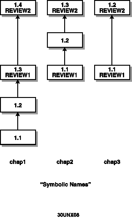 See Figure 30.8 for an example of how you might use symbolic names to record reviews of your novel. Your novel in this example has three chapters. For the first review, you sent revision 1.3 of Chapter 1 and only had the original outlines for Chapters 2