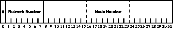 The 32 bits are split into 1 bit of 0, 7 bits of network number, and 24 bits of node number. (See Figure 37.1.) There could have been a maximum of 127 Class A addresses. However, net 0 is reserved, because at one time it was used as a global broadcast,