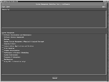 Unlike the preceding examples, the AIX operating system requires a special tool to reconfigure the kernel. This tool is the System Management Interface Tool (SMIT), developed by IBM for the AIX operating system. The AIX kernel is modular in the sense that portions of the kernel's subsystems are resident only when required.