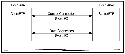 Whenever an FTP client (in UNIX, the client typically known as ftp) engages in an FTP session with a server process (controlled by what is commonly referred to as ftpd or the in.ftpd daemon in UNIX), TCP establishes two connections on behalf of both entities. These connections are known as the control connection and the data connection (see Figure 27.1).