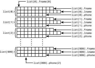 Figure 11.1. The relationship between a structure, structures within a structure, and the structure members.