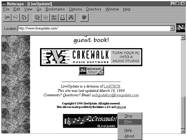 Figures 10.6 through 10.9 are images that display a few of the many kinds of plug-ins you might encounter on a Web site. These give you an idea of how to incorporate plug-ins in your own pages.