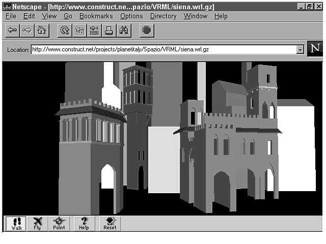 Originally called the Virtual Reality Markup Language, which points to its association with HTML, this language specifies how 3-D images can be displayed across operating systems, and also allows for low- and hi-resolution image loading across the Internet, lighting, shading, and much more. Netscape's Live3d adds a new dimension with movement and Java support. Figure 10.9 is an example of a VRML file.