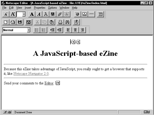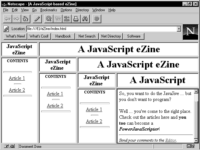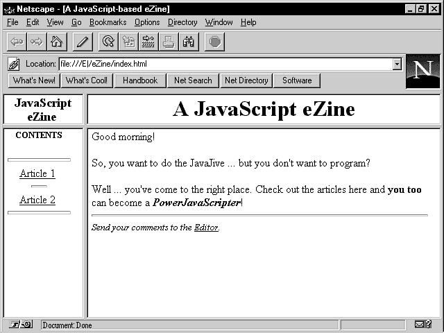 <TITLE>A JavaScript-based eZine</TITLE>