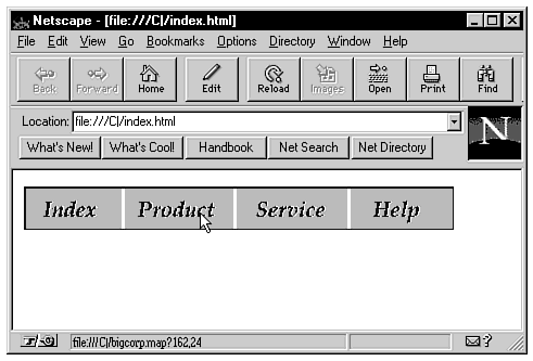 After you finish with all your tags, test your new image map. If all goes well, you'll have a new interface for your Web pages.