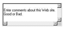 You can see how this looks in figure 13.3. Notice in the example that some descriptive text is enclosed inside the <FORM> tag, but outside of the <TEXTAREA> tag. This is completely legal-it just lets you explain what the purpose of the textarea is.