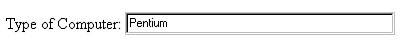 Type of Computer: <INPUT TYPE="TEXT" NAME="computer" SIZE="50" MAXLENGTH="50" VALUE="Pentium">