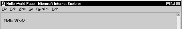 Figure 6.2 : The Hello World page as viewed in Microsoft Internet Explorer.