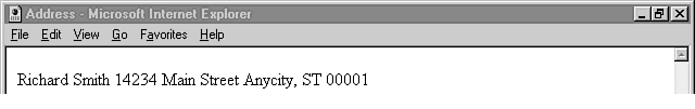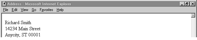 The answer is the empty tag <BR>, which forces a line return in your Web document. Properly formatted, your address would look like this: