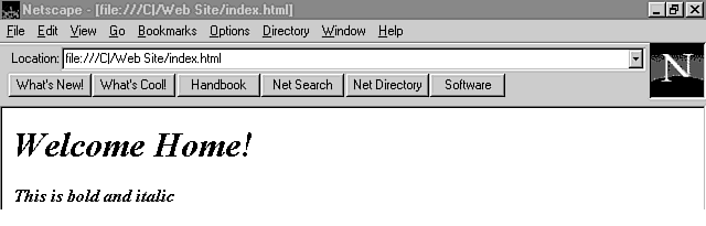 Remember that using <STRONG> and <EM> together is not recommended in the HTML 2.0 standard. We did it just as an example to see how it renders in your browser. |