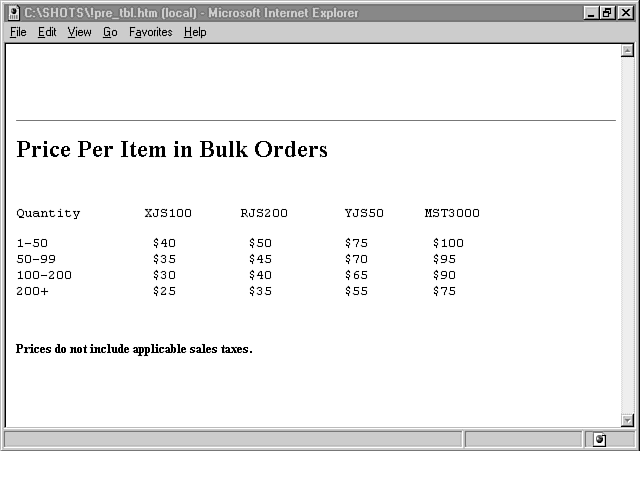 Figure 7.8 : Use the <PRE> tag to create a table.