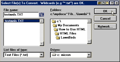 to quickly convert existing text documents to HTML after you select