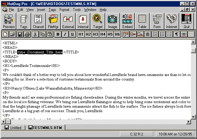 HTML document writing. The best part about HotDog Professional