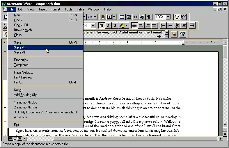 - Choose Save As from the File menu.