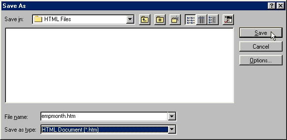 - Change the file type in the Save as type list box to HTML.