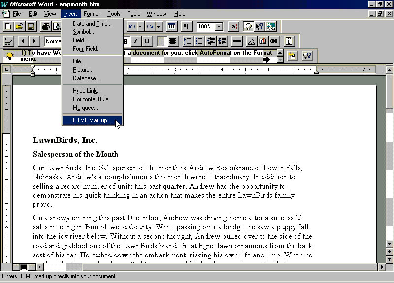 with Word who also wants to publish HTML documents. Internet Assistant