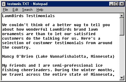 by a paragraph. If your text file has several different sections,