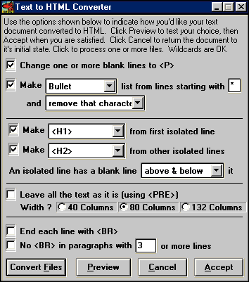 - Click on the Accept button to convert your text files to HTML.