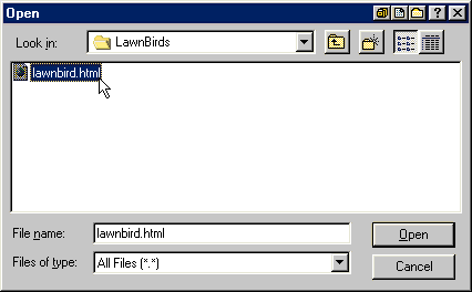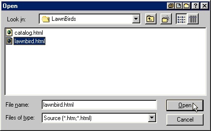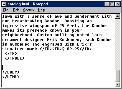 - Launch Notepad and open the lawnbirds.html file that you saved