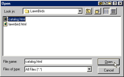Then type <A HREF="catalog.html" >Catalog</A></P>
