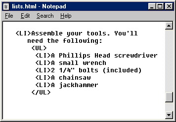 followed by the item. There is no need to include a closing </LI>