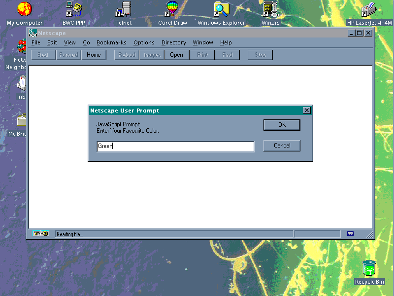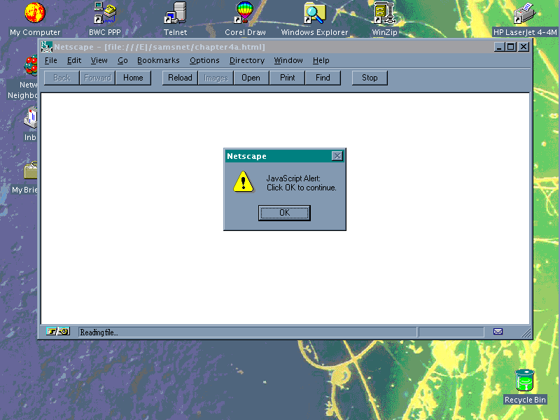 alert("Welcome to Netscape Navigator 2!");