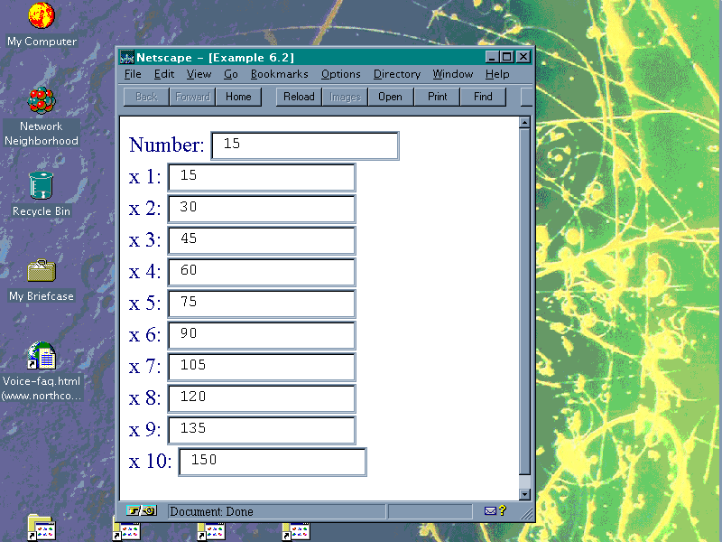 Using JavaScript, though, you can write scripts into your HTML documents to work with form elements and their values. You already saw a basic example of this in Chapter 5, in Listing 5.3 where you produced an extremely simple calculator that calculated