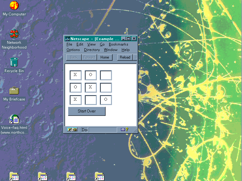 The onChange event handler simply calls the play() function which records the user's play, checks if the user has won and, if necessary, chooses a play for the computer.