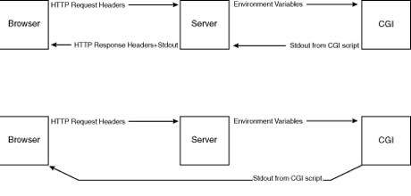 Figure 5.1 depicts the stages in an HTTP transaction that include a CGI script.