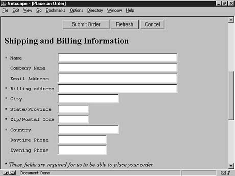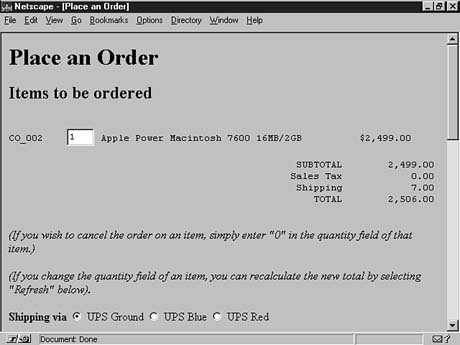 The remaining HTML in this example is simply the order form for gathering information