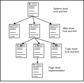 As Figure 11.18 shows, a systems-level look-and-feel diagram created using this idea can be a powerful way to enforce a consistent page layout across a system of webs. Individual webs in a system might vary the look and feel slightly, and sections within each web, as well as visual cues such as icons, might vary the general page layout.