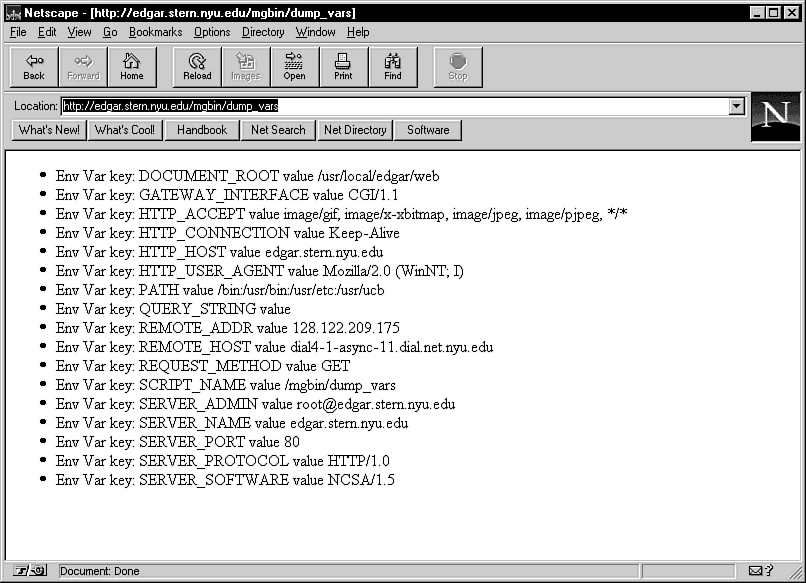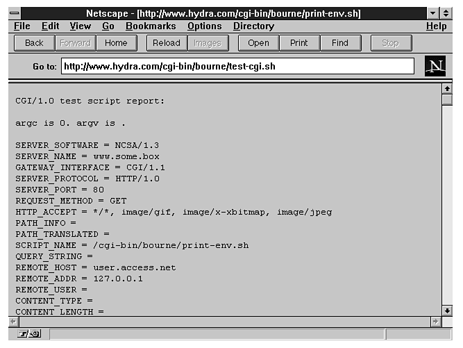Figure 20.1 shows the result of the test-cgi environmental variable report.