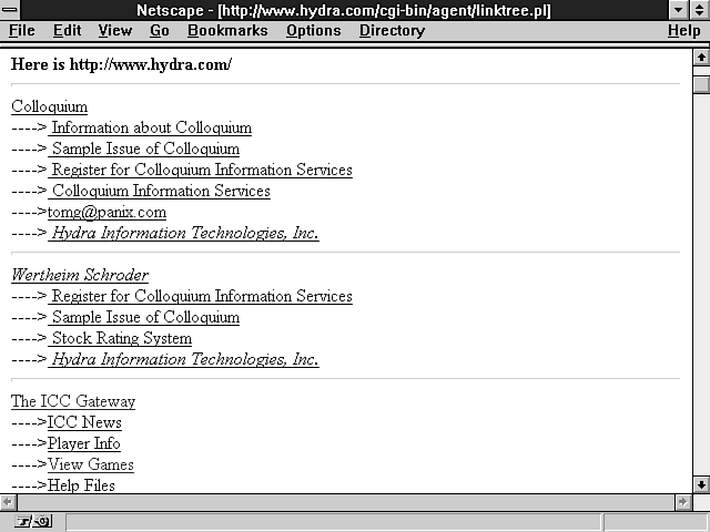 Figure 24.15 : Output produced by executing LinkTree with the URL http://www.hydra.com/.