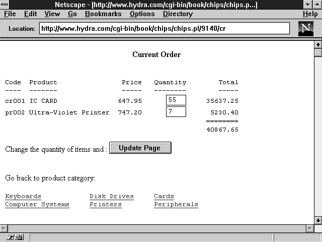 I also present an example using Lincoln Stein's Perl 5 CGI.pm module with Netscape Cookies to show Netscape's vision of simplified state maintenance.
