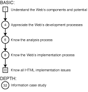 | A methodology for information development for the Web; characteristics and qualities of the Web as a medium of communication; and the processes of planning, analysis, design, implementation, promotion, and innovation. | |
