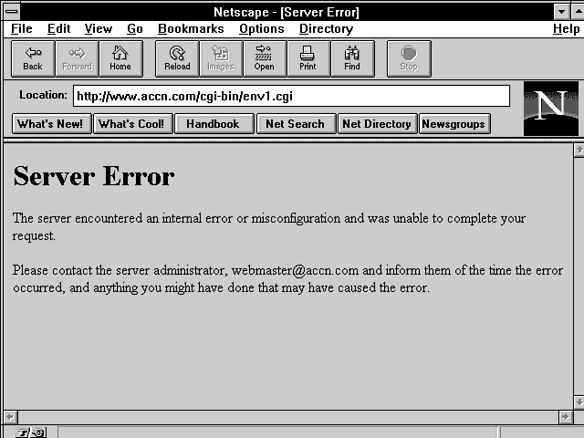 If you've done all of this, you now are testing from your Web browser, and you still are getting one of those ominous server error messages, check for this common mistake: Make sure that your CGI program is printing a valid Content-Type response header and that the last response header your CGI program prints consists of two newline (\n) characters immediately after the response header.