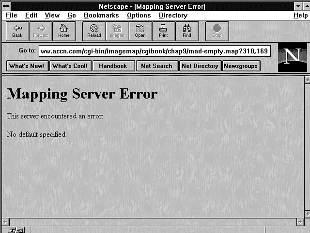 Figure 9.8 : The error message sent by the image-map program when a default URI is undefined.